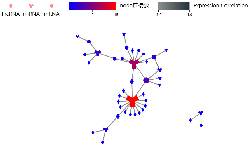 工具介绍:综合考虑mRNA/lncRNA与miRNA的靶向关系、RNA表达量相关性、超几何分布检验等,计算ceRNA关系,并绘制网络图